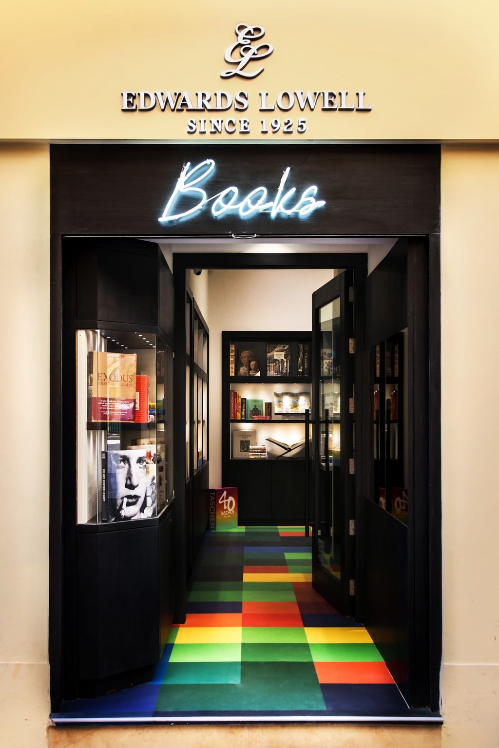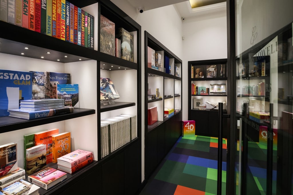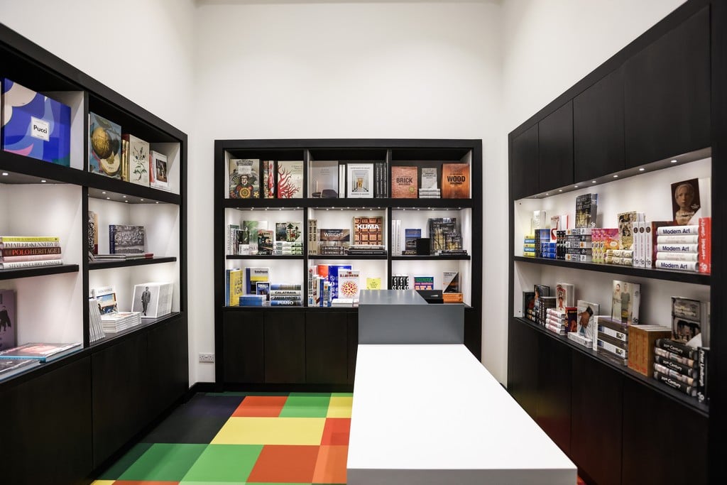 Located on Zachary Street in Valletta, the Edwards Lowell Book Store features a vast selection of perfectly bound, attractively presented books on art, fashion, photography, travel and lifestyle. The space is characterised by bright coloured squares on the floor and beautifully curated shelves, with hardbound books under bright spotlights.