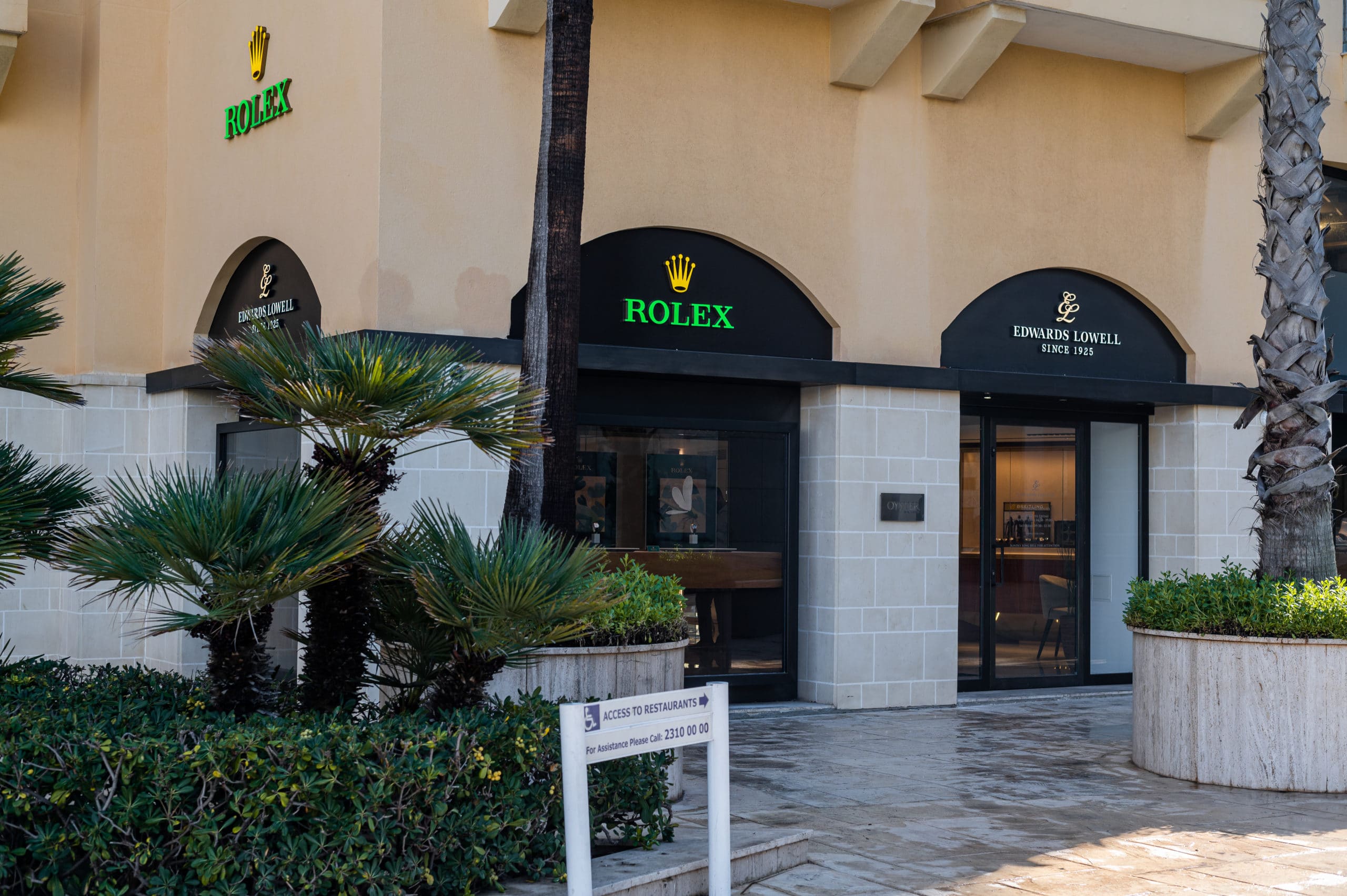 Opened in 2019, the Edwards Lowell Concept Store at Portomaso is a luxury retail destination spanning two open-plan floors with a terrace overlooking the yacht marina. The space merges lifestyle, art, design, books, watches and jewellery all under one roof, including an art gallery, champagne bar, and high-end library.
